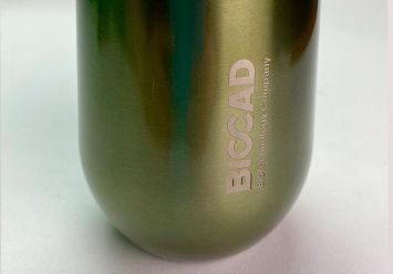Тот тип гравировального оборудования, который используется для печати изображения на изделия из алюминия позволяет наносить изображение по окружности. Это открывает огромные возможности в брендировании такой продукции как термосы, термокружки и бутылки.